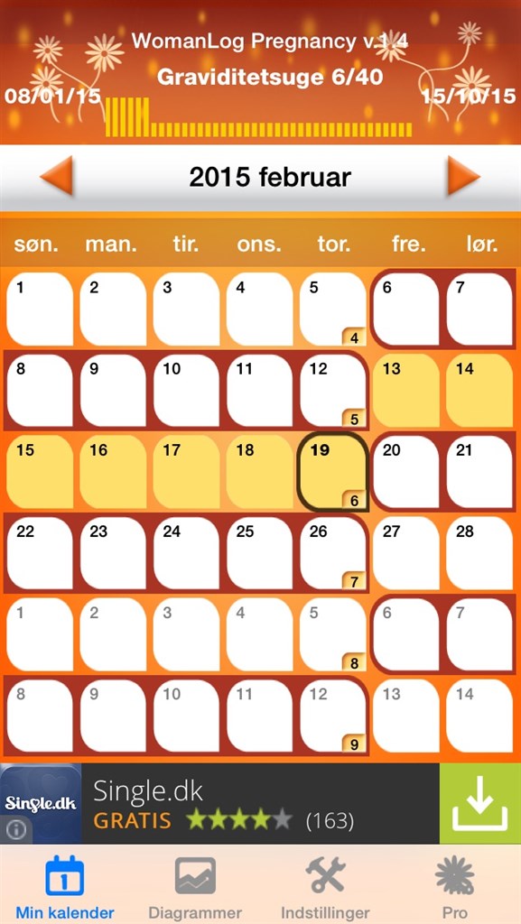 Den siger (ud fra mine oplysninger) "du er 6+5, gravid i 7.uge"... Klik her for at læse mere om graviditet i uge 6 (så lang så godt, er med på at 7.uge og uge 6 er det samme.