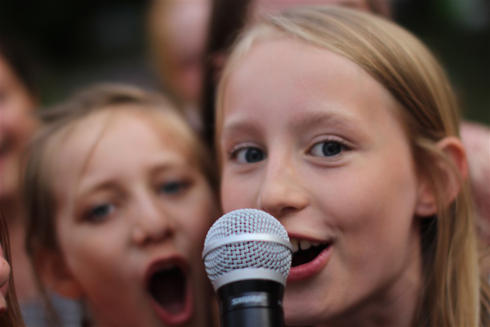 Mikrofonen er ét af de vigtigste redskaber til børnefesten. Denne bliver benyttet til, at lave sjov og ballade med børnene. Eksempelvis bliver der lavet leje såsom: skeen-går-rundt, stop dans, hymner og andre fællesleje, der aktiverer børnene.