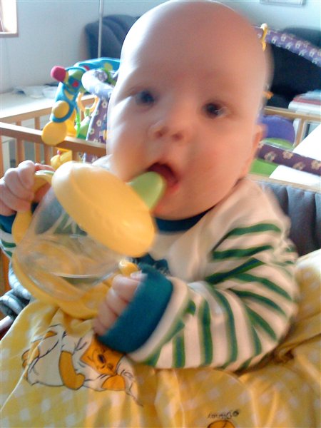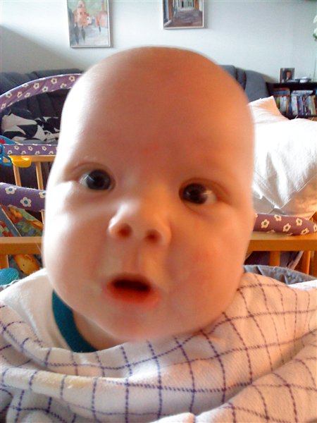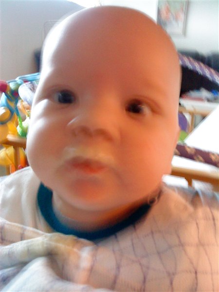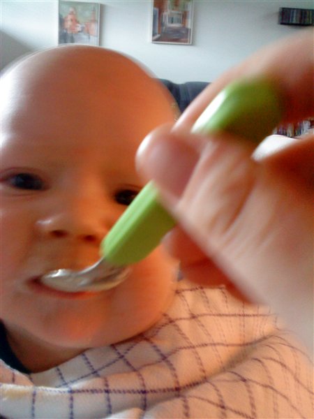 her er lige lidt billeder af min dejlige dreng da han fik sin første grød igår