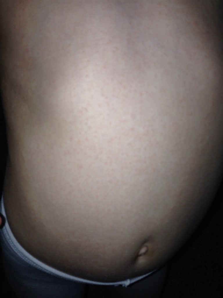 Grunden til at jeg spørger er at, det kan ligne mæslinger eller rødehunde - dog er det da langtfra sikkert/sandsynligt, specielt hvis hun er (igang med) vaccinationsprogrammet