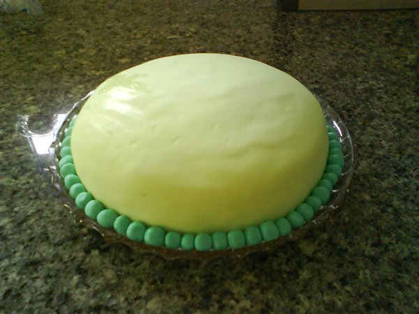 Jeg har lavet den med MMF og puttet limemusse og MarabouDaim'creme imellem nogle købe bunde.. Ja, kunne ikke lige overskue selv at bage dem, her ved min første kage..