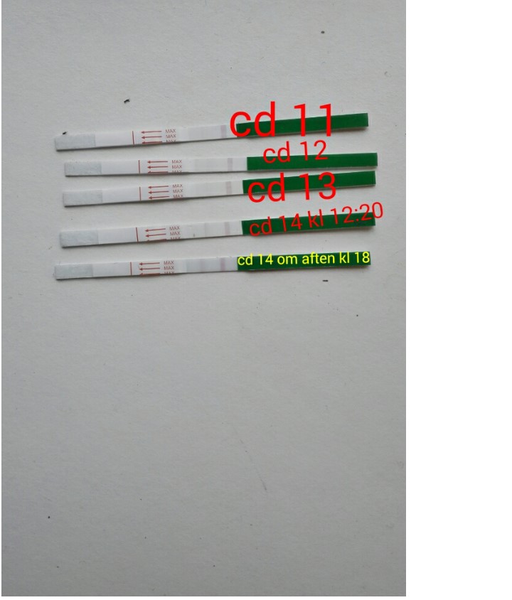 Jeh har siden dag 8 tage ægløsnings teste. Da jeg har cyklusser mellem 26 og 32 dage . det er så først idag på dag 14 at man kan se en svag streg uden at skulle ane noget. Betyder det så at ægløsning er nær da jeg også har en øget sexlyst samt en masse æggehvide udflåd. Spørg ind til det pga jeg ikke ved en dyt og ægløsningsteste udover at test stregeb skal være tysligere en kontrol stregen.