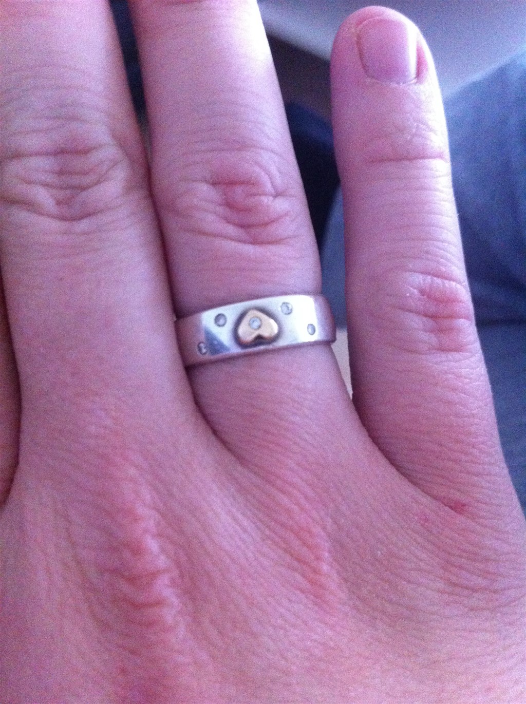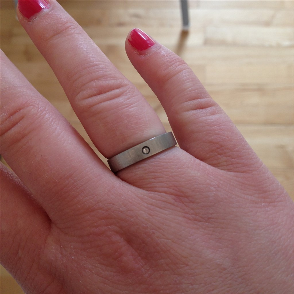 Hos os er det kun mig der har ringe. Har den samme slags som forlovelsesring som vielsesring. Vielsesringen er bare noget større karat-mæssigt. Guldringe, forlovelsesring 0.05 brilliant, vielsesring 0.10 brilliant. Den lille købt for 4 år siden til 2100kr og den "store" for 2 år siden til 6400 mener jeg den stod til, men butikken lukkede så de havde halv pris