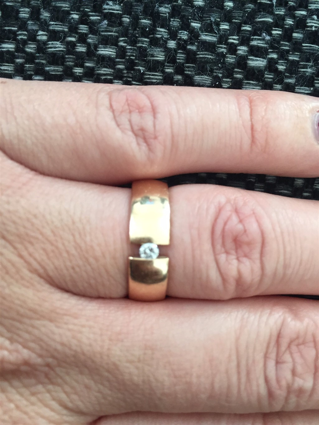 Dette er min ring, min mands er jo bare uden sten i. den er købt hos Dirk i rødover centeret. Tror man kan finde en del af den her slags, til forskellige penge. Tror min kostede ca 6500-7000 kr og min mands 5000 kan næsten ikke huske det mere... Men prisen kommer jo ofte an på hvor meget guld der er i og hvilken karat man vælger, der er bare så mange fine ringe og prisklasser at vælge imellem, så mon ikke du finder lige en ring til jer