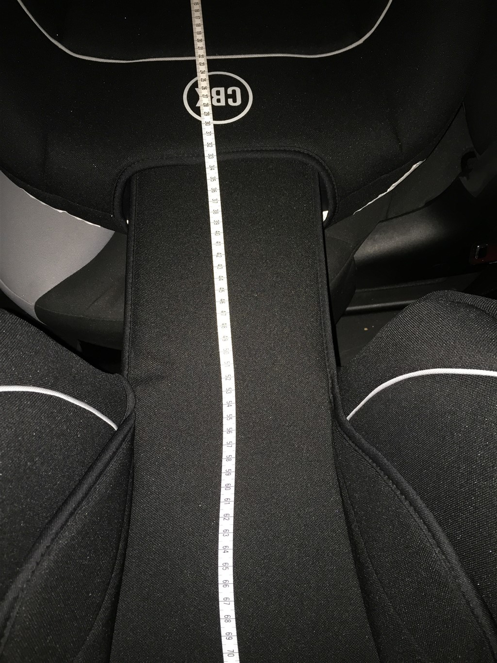 Jeg kan ikke lige svare dig på mere omkring højde. Jeg har lige været i bilen, skubbede vores stol helt op og målte den til 73 cm