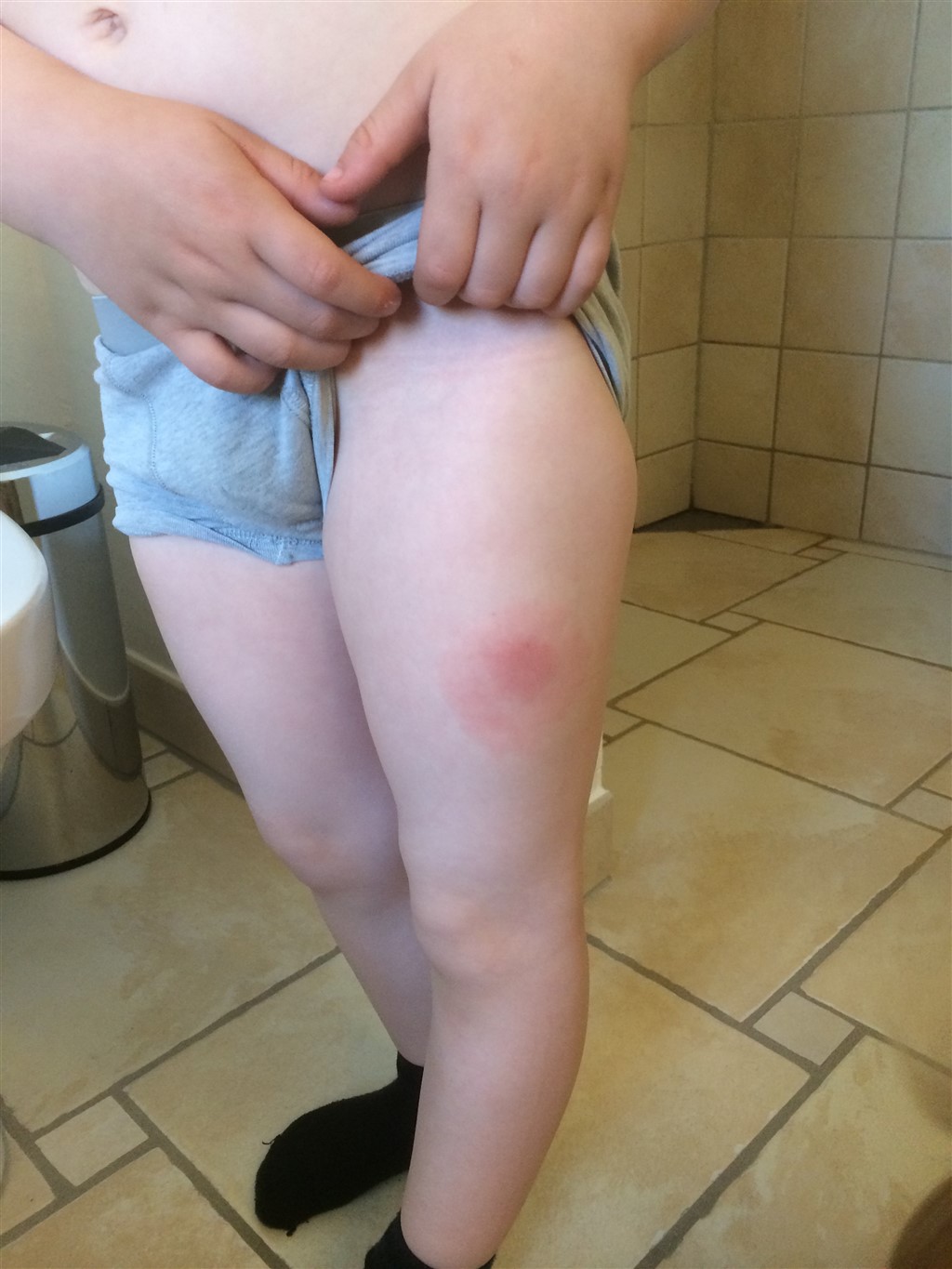 I morges havde han en rød, hård plet på str med en 20'er. Her til aften er den meget større, hård og varm! Er det normalt? Så store mærker plejer de ikke at få, mine drenge.