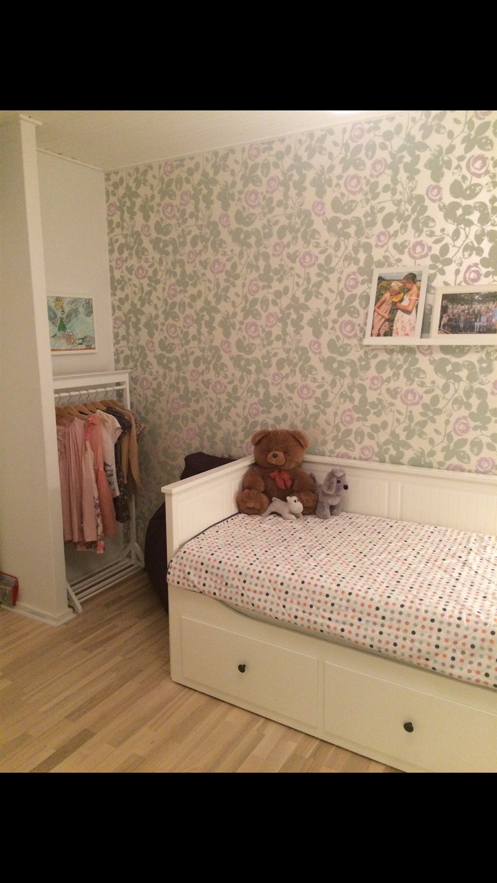 For så kan en løsning sagtens være en rumdeler med kasser til noget af legetøjet ...