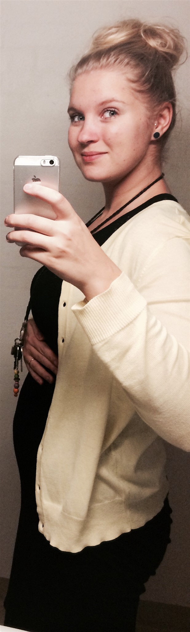 Den er fra min første gravited, 16 uger (har ikke nogle tidligere). Ikke så stor mave.. man kunne first mærke at jeg var gravid omkring uge 20.