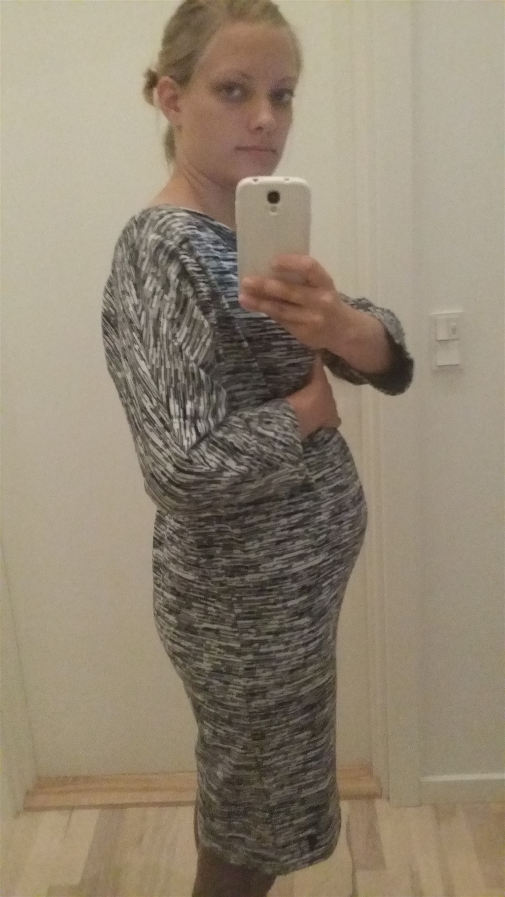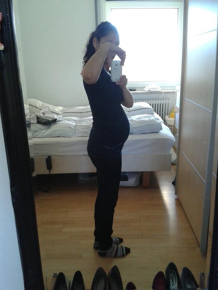 Jeg er 34 uger henne snart og man kan først ane jeg er gravid nu har ikke voldsom stor mave