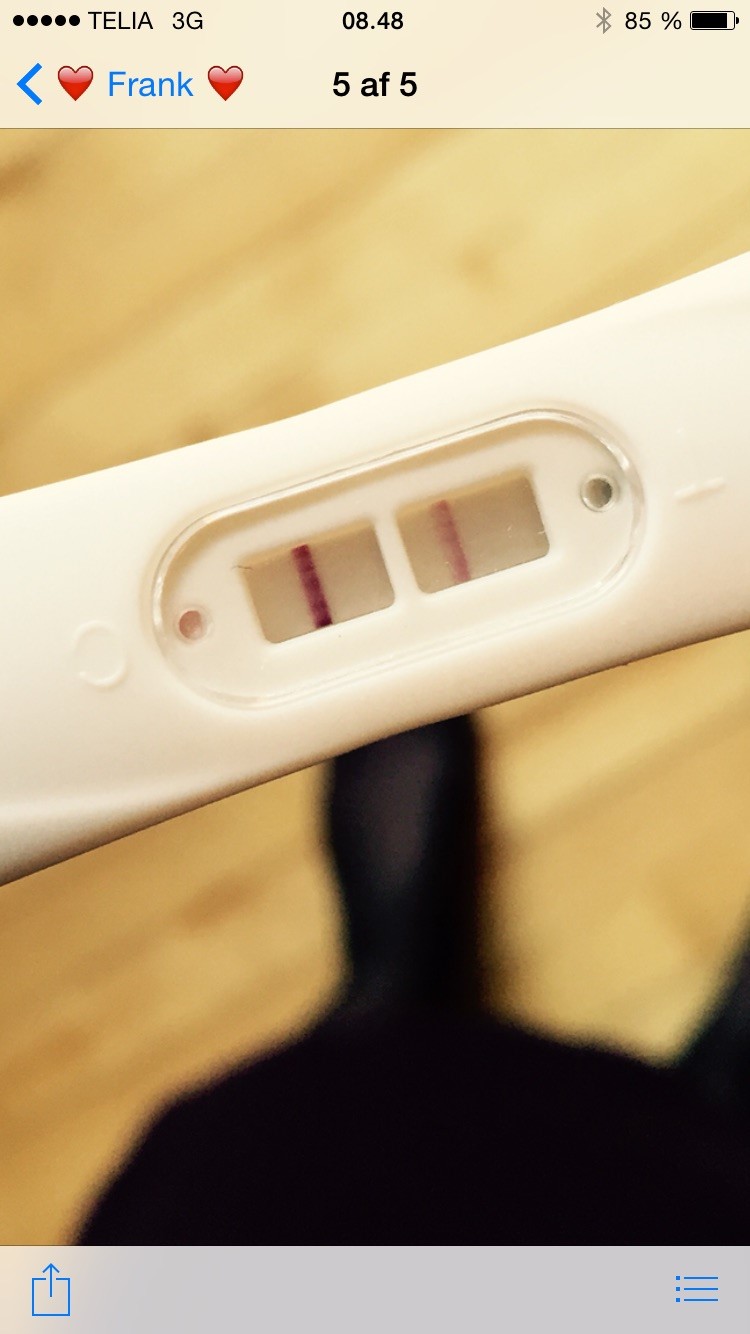 På pakken står der at begge streger skal være lige tydelige, men det synes jeg endnu ikke nogen af mine har været. Kan i sige mig om den på billedet er positiv? Den er taget på 20. dag fra første dag i min sidste mens.