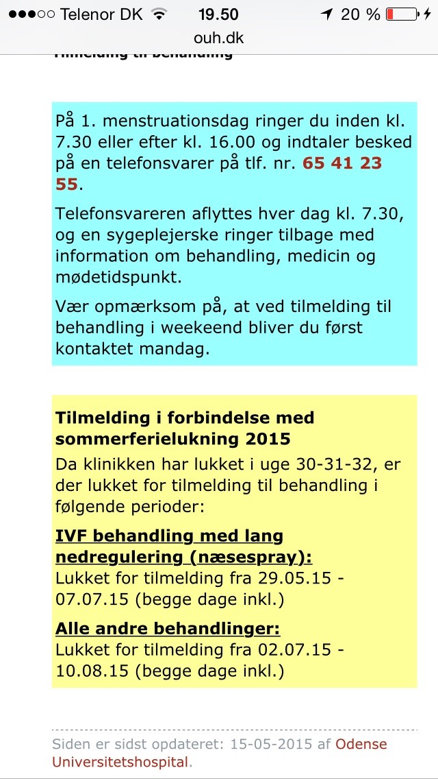 Altså det jeg mener er at hvis jeg nu fik mens idag og de f.eks scanner mig i slutningen af denne måned og kan se jeg vil komme ind over hvornår de har sommerferie om de så afbryder iui eller om de vil forsætte indtil insemineringen?