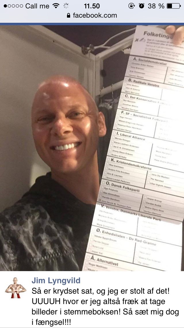 SandraXOXO skriver: Men han lagde jo en selfie (hvor jeg dog hader det ord) på fb af sit store smil samt sin valgseddel med hans df kryds? Og han har prædiket DF for Danmark osv, hele ugen på sin fb.