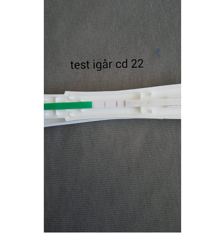 Jeg tog en ægløsningstest igår cyklus dag 22, som var er meget tydlige når man tænker på det er dag 22 og har i tidligere cyklus taget efter positive test og der har kun været en streg. Nå men tog så en til idag . og den er lige så tydlig.