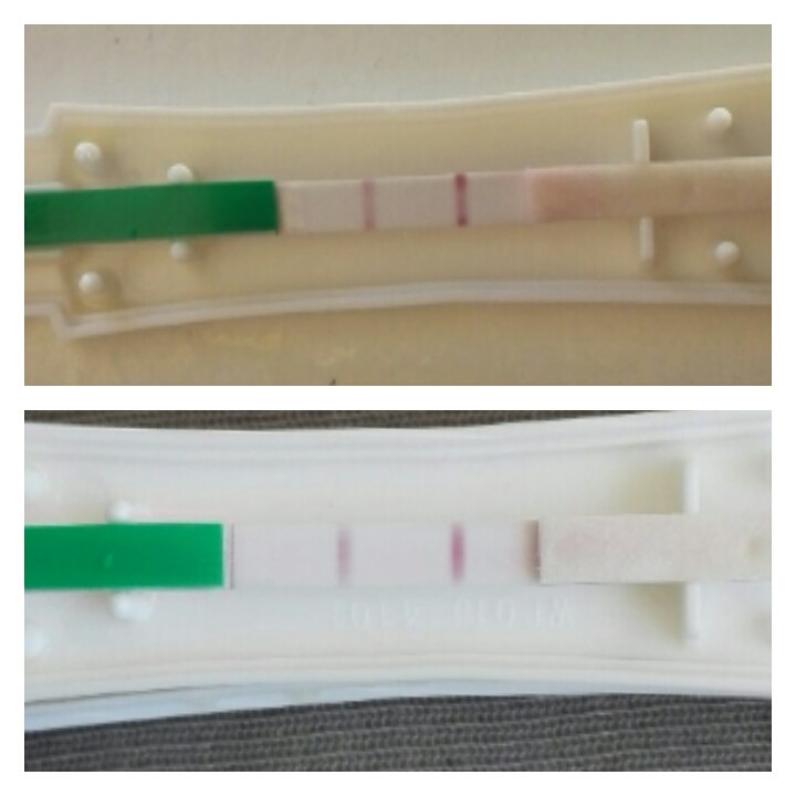 Er teststregen ikke til venstre? Årh er ikke god til at folk piller testene fra hinanden altså. Kan man ikke aflæse uden at ødelægge er jeg ret overbevist om, at de ikke er positive.