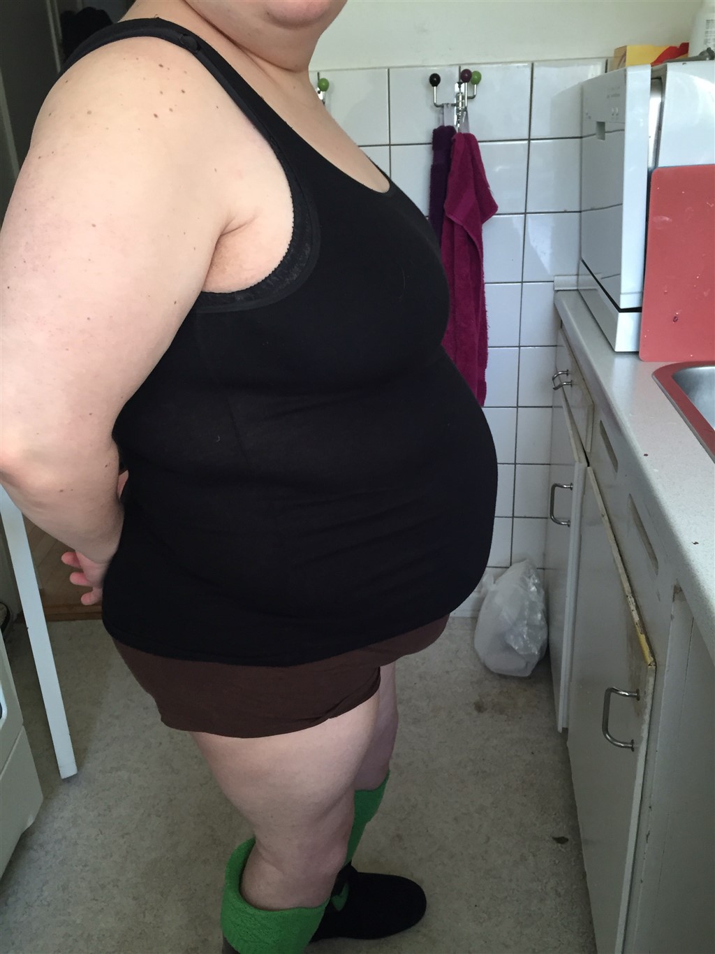 . Det ligner ikke en gravid mave endnu, så glæder mig til den dag det sker og til jeg begynder at mærke liv... Men nu har jeg taget billeder af maven idag... Det uden tøj er da jeg lå i min seng i morges og det med tøj på er fra her over middag... Kan nok selv bedst lide det fra imorges hvor jeg synes man kan ane en baby-bule, hvor det andet ser jeg stadig bare stor ud...