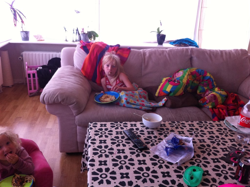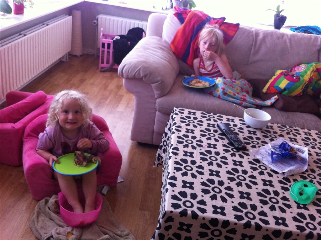 Og i dag holder jeg ungerne hjemme, fordi jeg først ska møde kl 15, og kæresten har tidligt fri fordi det er fredag.