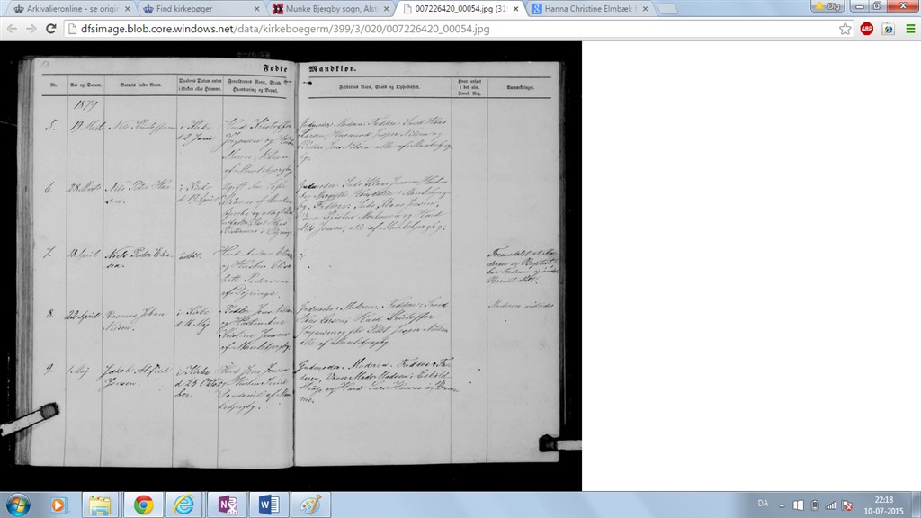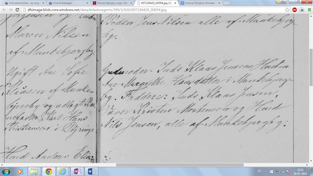 ... Margrethe Hansdatter i Munkebjergby. Faddere: Juds Klaus Jensen, Verner Kristen Mortensen og Hard/Hurd Nils Jensen, alle af Munkebjergby."