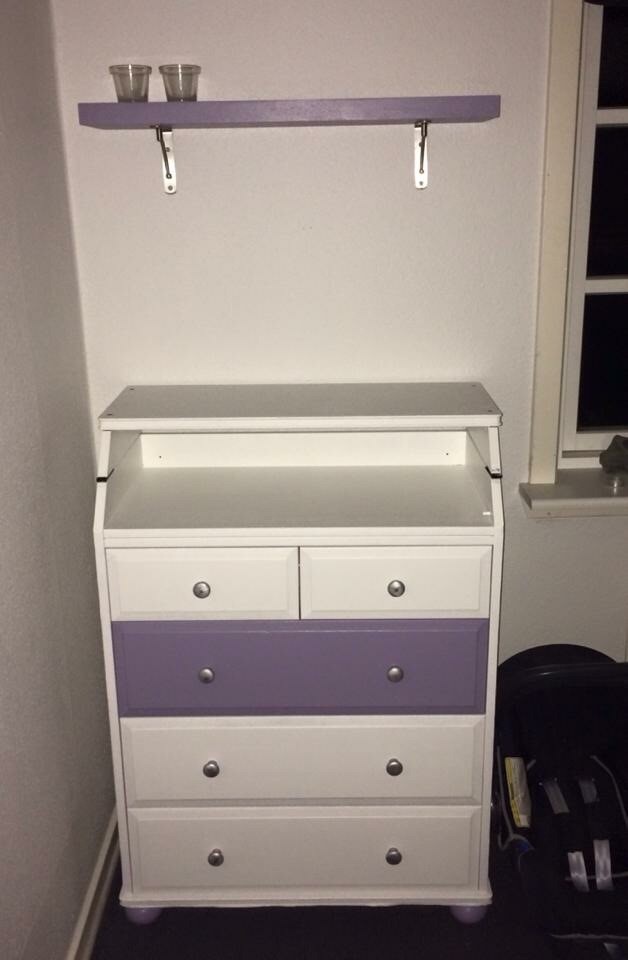 Først en grov sandpapir, og så en finere. Og det kan sikkert bruge to gange grundere. Jeg har malet alle møbler på børnenes værelser- et godt råd: brug penge på en god maling, og et godt pensel/rullesæt. Grunder kan du købe i Jem&Fix. Den er faktisk rigtig god!