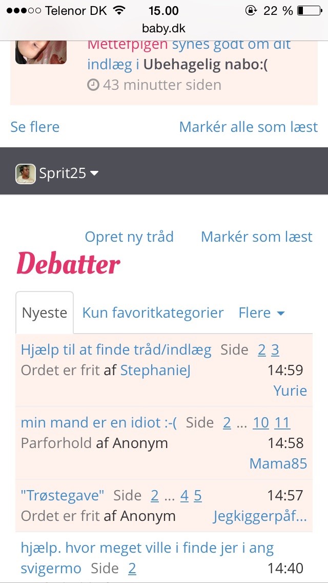 Lige over debatterene, der står nyeste, favoritter og flere.