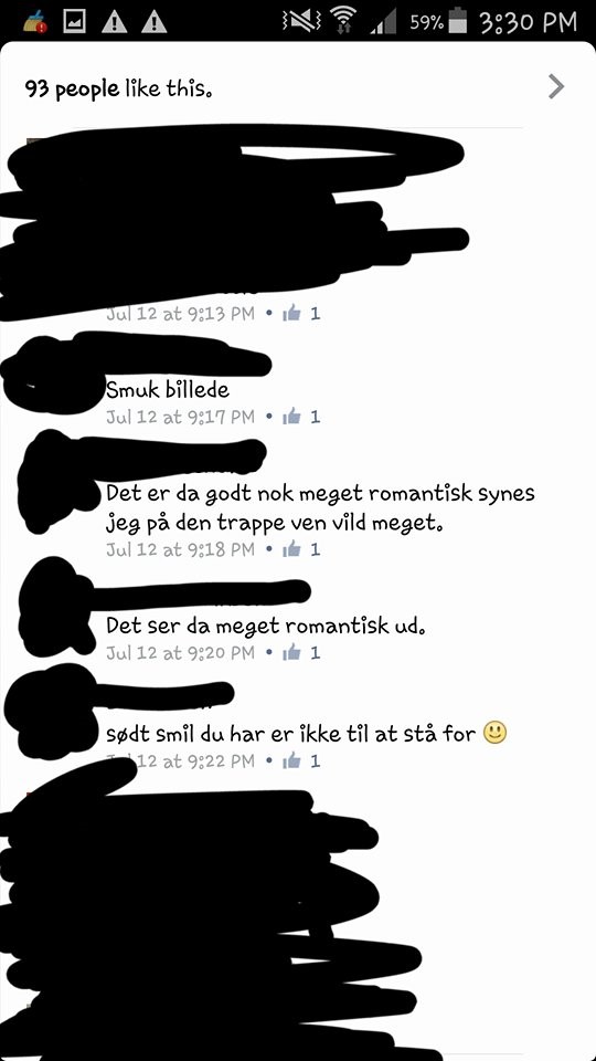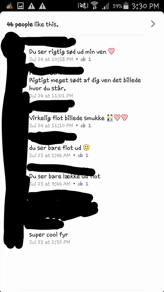 Ej puha... jeg sad lige og scrollede lidt på Facebook, og nysgerrig som jeg er, så trykker jeg mig ind på en profil, som leder til en anden profil, som leder til en 3, osv.... I kender det vel godt. Tilfældigvis lander jeg på en 14-15 årige dreng Facebook, og han har ret mange "likes" og kommentarer på hans profilbilleder. Jeg kigger lidt, og.. puh... Hans billeder er fyldt op med gamle grise og naive småpiger. Flere mænd, som i hvertfald er over 40, kommenterer ting som, hvor er du en frækkert, smuk, sød, dejlig, hvor ville jeg gerne være i vandet hos dig, dig ville jeg gerne være bøgen med osv.