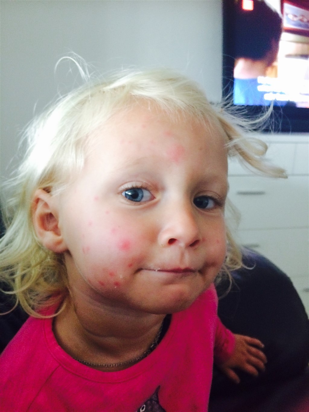 Nu er jeg overfølsom overfor myg, og synes ikke de ser så slemme ud. Ja der er mange, måske fordi deres blod/hud 'dufter' bedre? Hvis du vurderer at det er myg og ikke allergi så på med myggestiften, evt noget koldt på, og for Guds skyld ikke klø! Det er svært når man er lille.