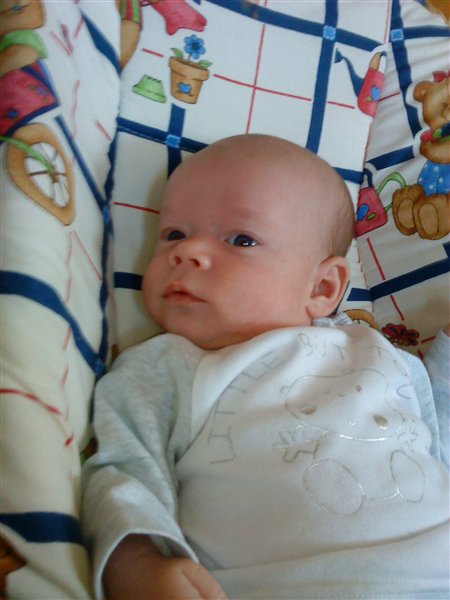 Janni Knudsen skriver:Hvor er han bare sød..vi har også været til 5 ugers undersøgelse i denne uge.. Oskar er nu 61 cm lang og vejer 5,76 kg.. Så han er ved at være en rigtig basse..