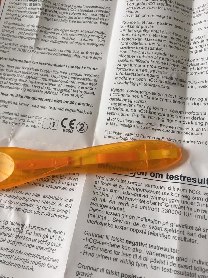 - så testede jeg igen torsdag morgen, hvor jeg tog endnu en test, som også vidste svag positiv, men stregen var stadig meget tydeligere end den onsdag, syntes jeg selv