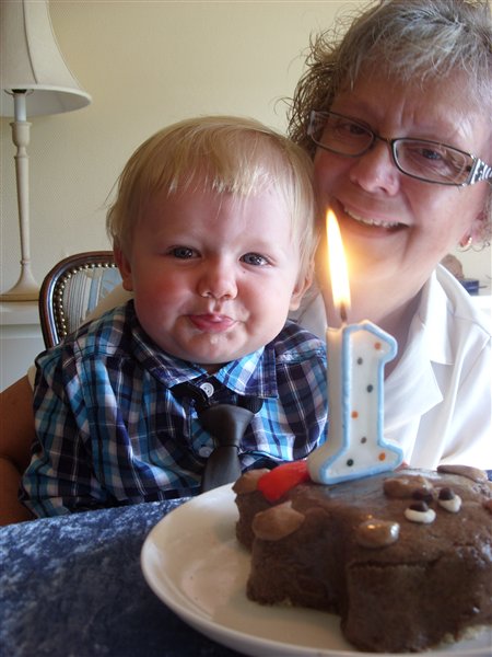 Han fik sin egen bamse lagkage og hjalp selv med at puste lyset ud... Han var bare så dygtig!