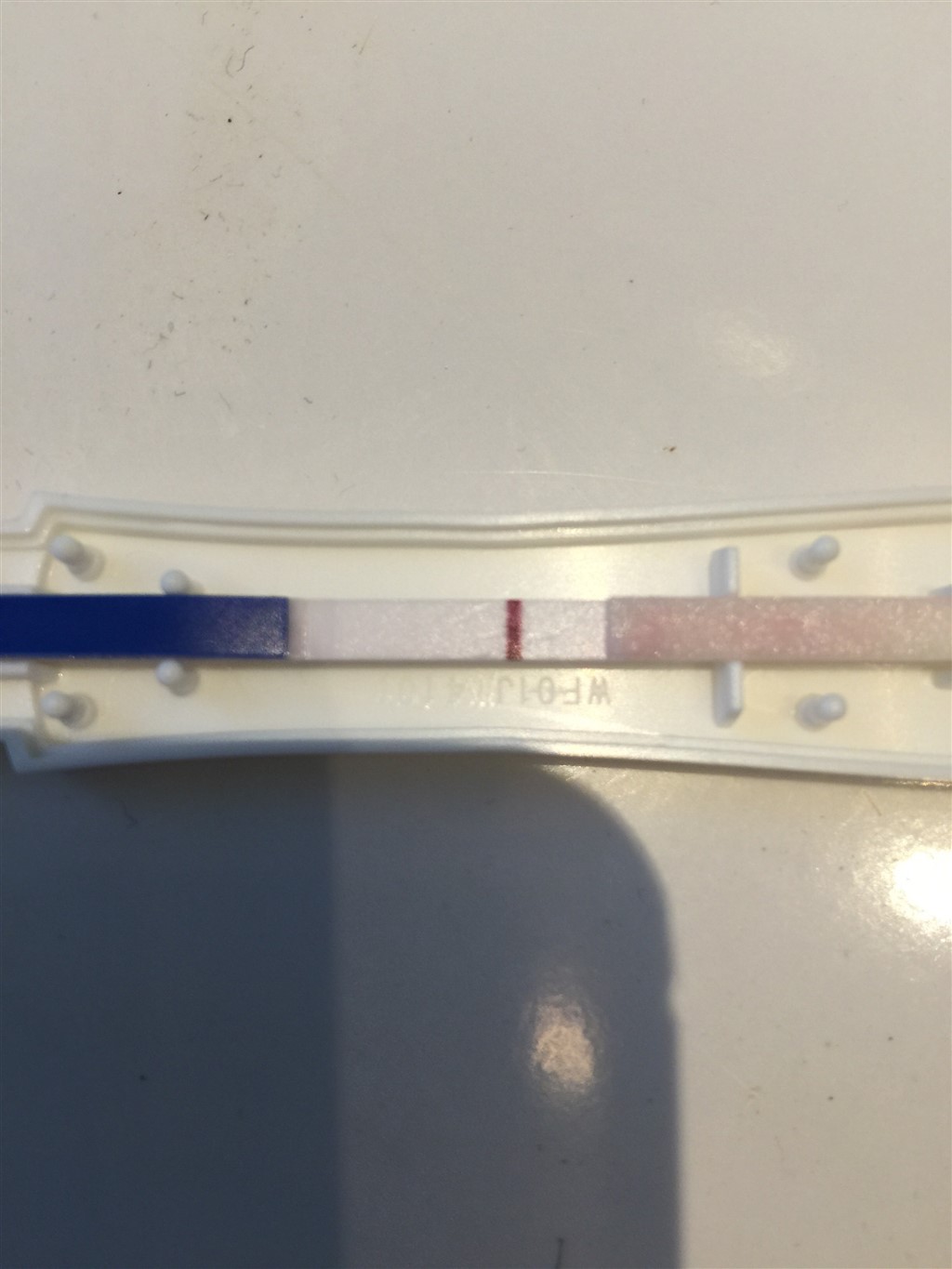 og kom idag til at teste alt for tidligt, og en meget meget utydelig streg kom frem, den er enormt svært at fange på billede. Men kan i os se noget ligesom mig.