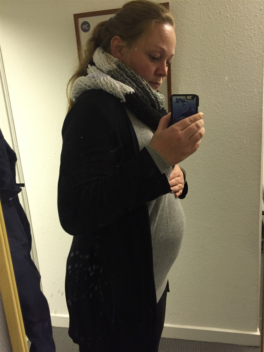 Mavebilledet er det første, da det først er nu den er begyndt at vise sig :) Tag jer ikke af mit trætte ansigt ;) Er taget på jobbet nu, efter 11 timer på job..