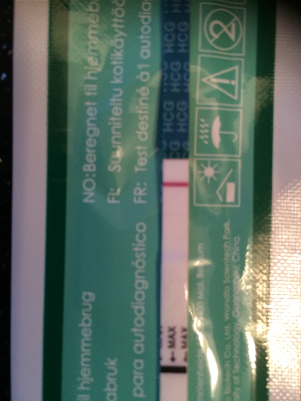 Jeg har de seneste to år testet med disse test og der har ALDRIG vist sig skyggen af en streg, selv om jeg har forsøgt at fantasere mig frem til en :-D Men denne gang er der en streg. Jeg kunnne godt tro, at det er 'sprøjten' fra i lørdags der gør det, men da test-stregen i dag er blevet en smule mere tydelig, kan jeg kun håbe på, at det er en rigtig streg.