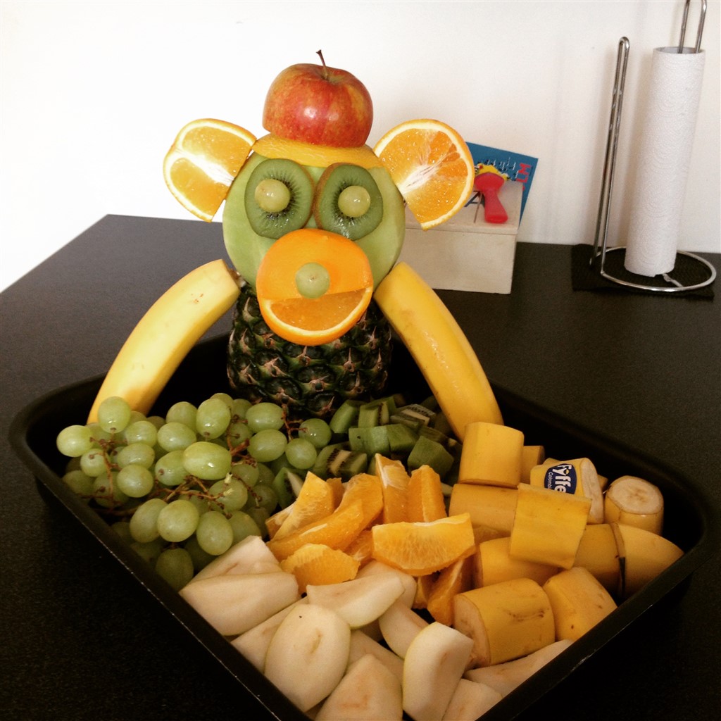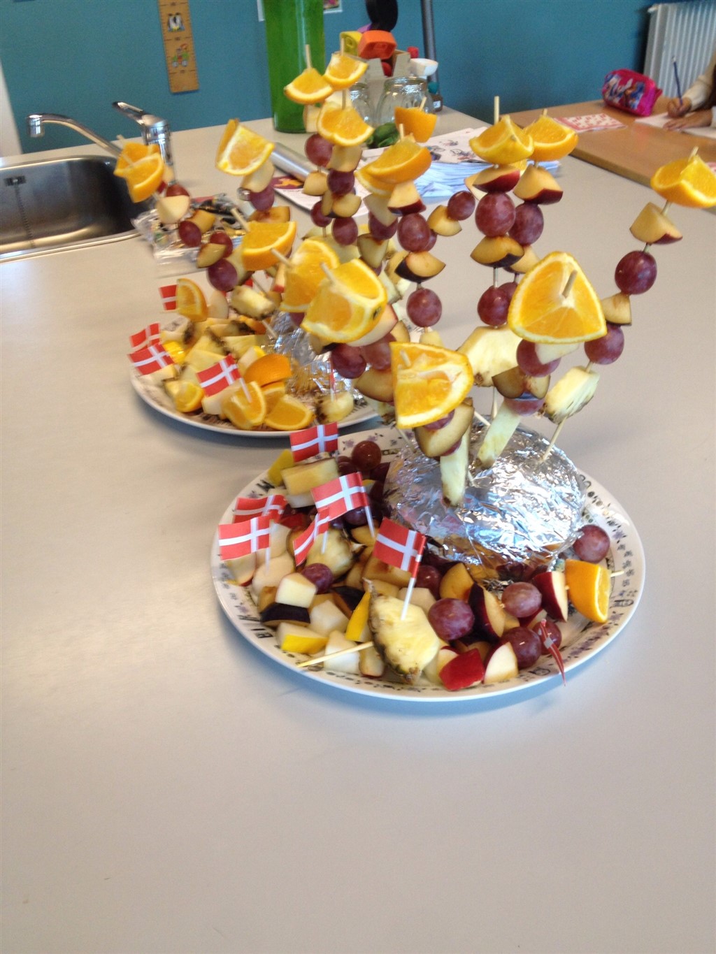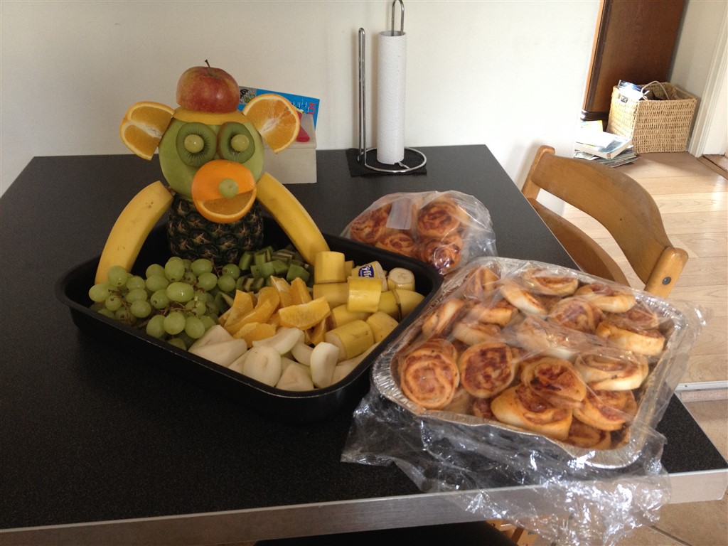 Vi er ikke så sukkerforskrækket, men vi valgte at lave pizza snegle og komme med en frugt abe. Det var et stort hit og fik stortest intet med hjem...