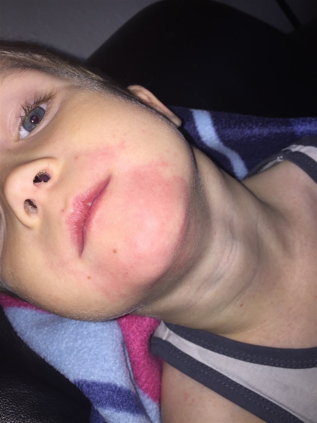 Han er også rød i hele området ved tissemanden, det var han allerede i går aftes, men troede bare det var ligesom når blebørn blev røde og smurte noget creme på.