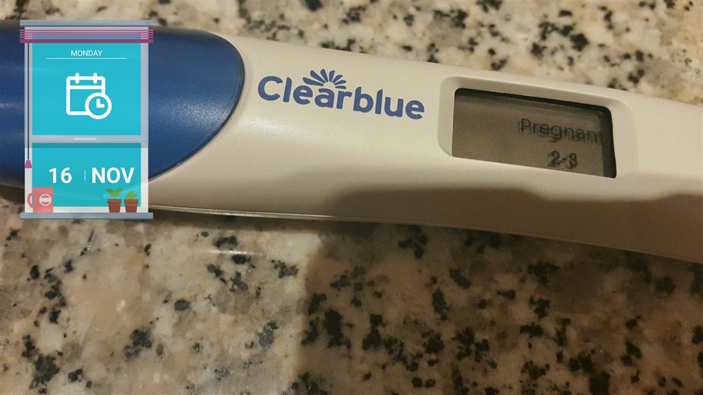 D. 16/11 2015 testede jeg igen med en clear blue digital, der sagde 2-3, dvs. jeg har 4-5 uger henne (måske kun 4+0).