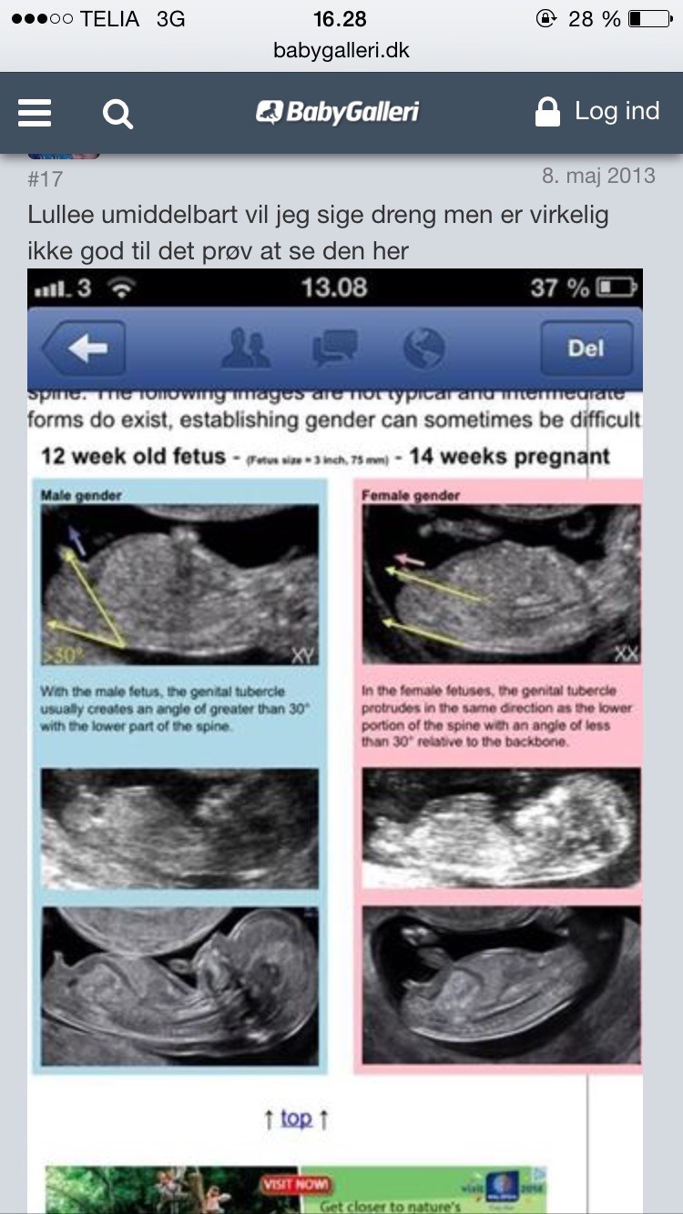 Jeg er idag 12+0, og har endnu ikke været til NF men blev skannet 10+6. Det er vist noget om at man kan gætte kønnet udfra hvilken vej tappen vender - som på det viste billede. Så her på en kedelig mandag aften, så håber jeg i vil gætte lidt sammen med mig. Det er 3. barn og vi har i forvejen 2 piger.