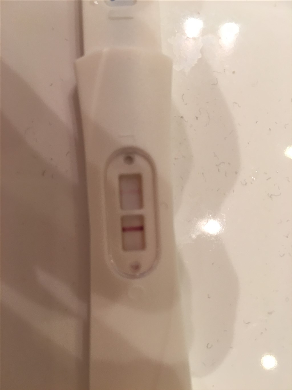 Jeg tog en test i torsdags hvor der var en meget utydelig streg. Jeg skulle ha' haft min menstruation fredag, men den er ikke kommet. Jeg tog en test igen for nogle timer siden og der var igen en ret utydelig streg.