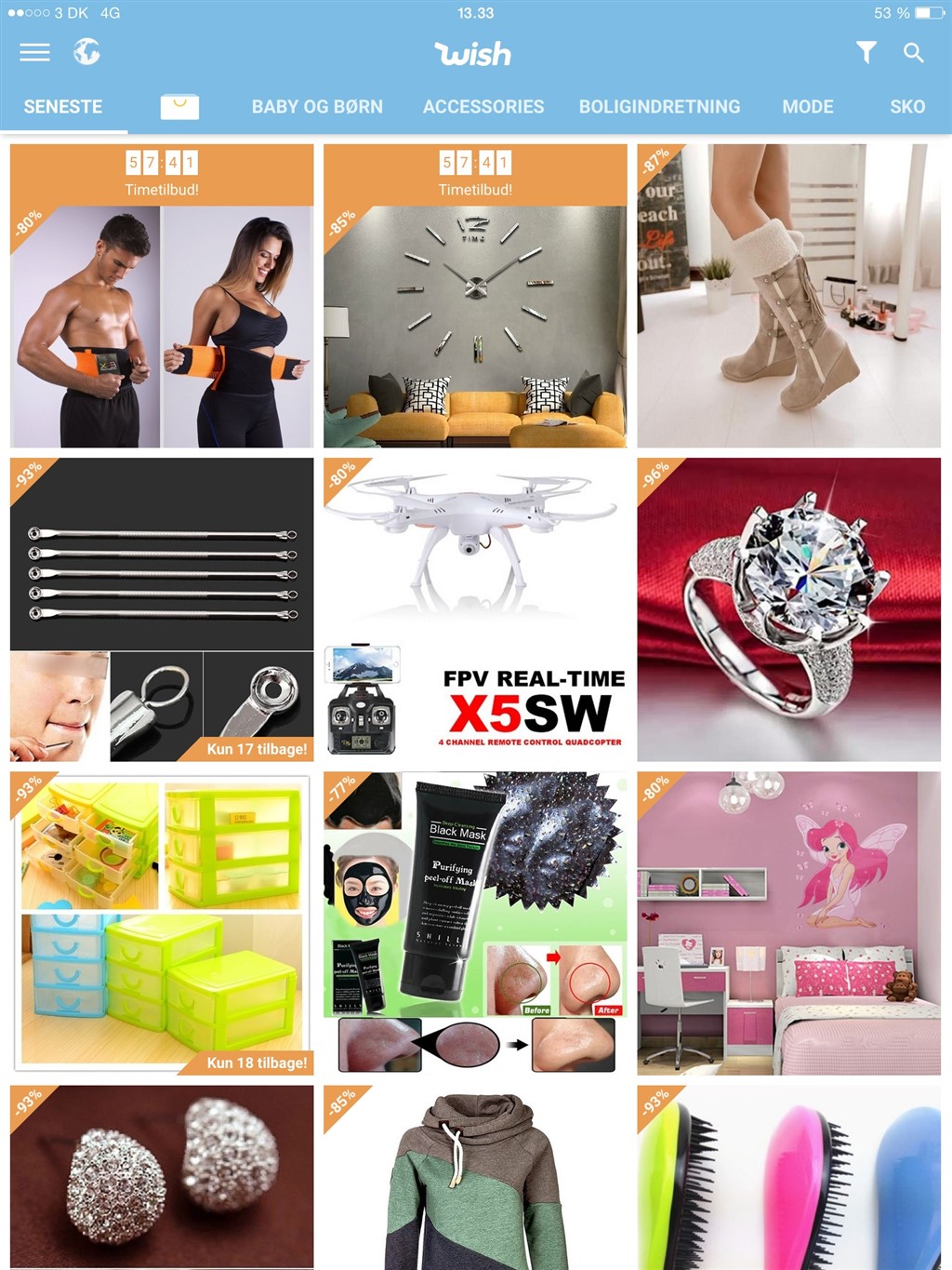 I aftes her hentede jeg så Wish app'en (så er jeg fri for min mand brokker sig over jeg smider en masse i indkøbskurven som ik siger ham noget)