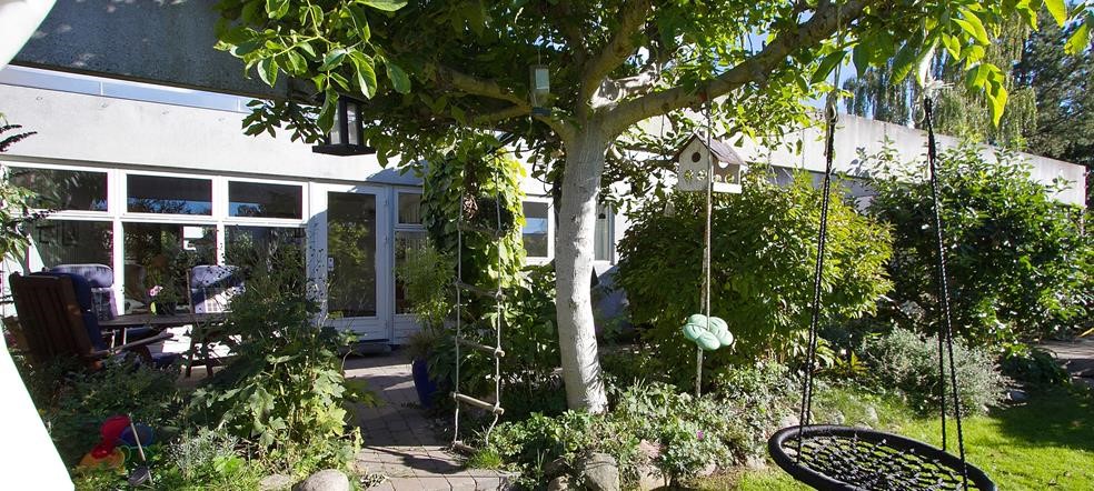 Der er børn på den lukkede vej og huset ligger helt i enden, hvor ingen trafik er, og de har en skøn have.