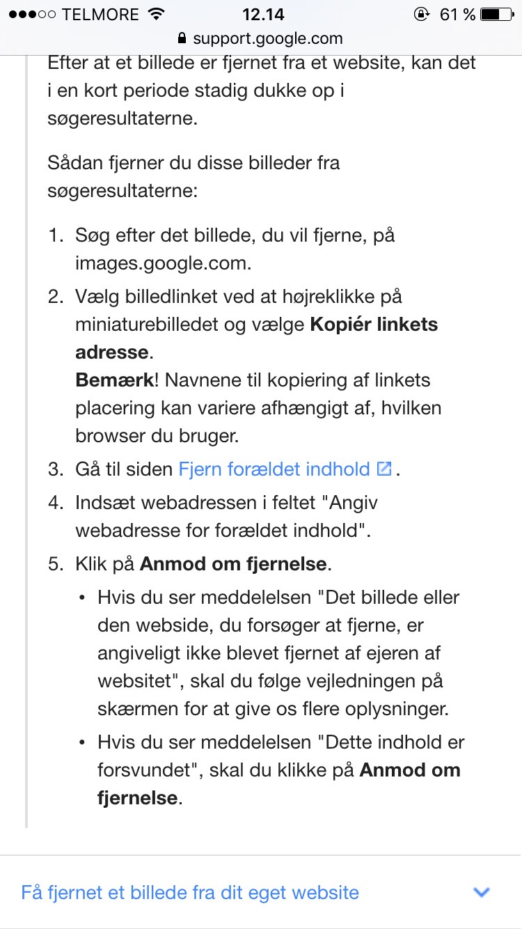 Nu vil jeg meget gerne have alle disse billeder væk. Kan du Carina Kruse hjælpe mig med det?