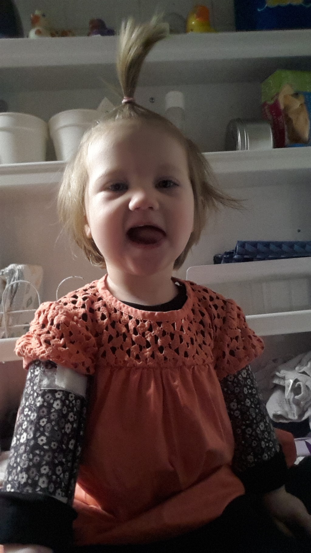 sengen byggede vi i vores gamle lejebolig hvor der var plads til den og i dag har vi bygget lillesøsters seng ind i underkøjen... siden på lillesøsters seng kan klappes op og ned så hun ikke selv kan kravle ud