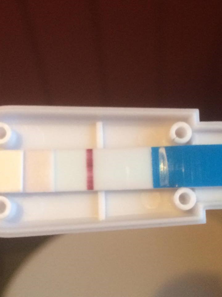 Kan I lige hjælpe mig .. den ser negativ ud, men der er en halvhvid streg.. den er først kommet efter der er kommet urin på ..
