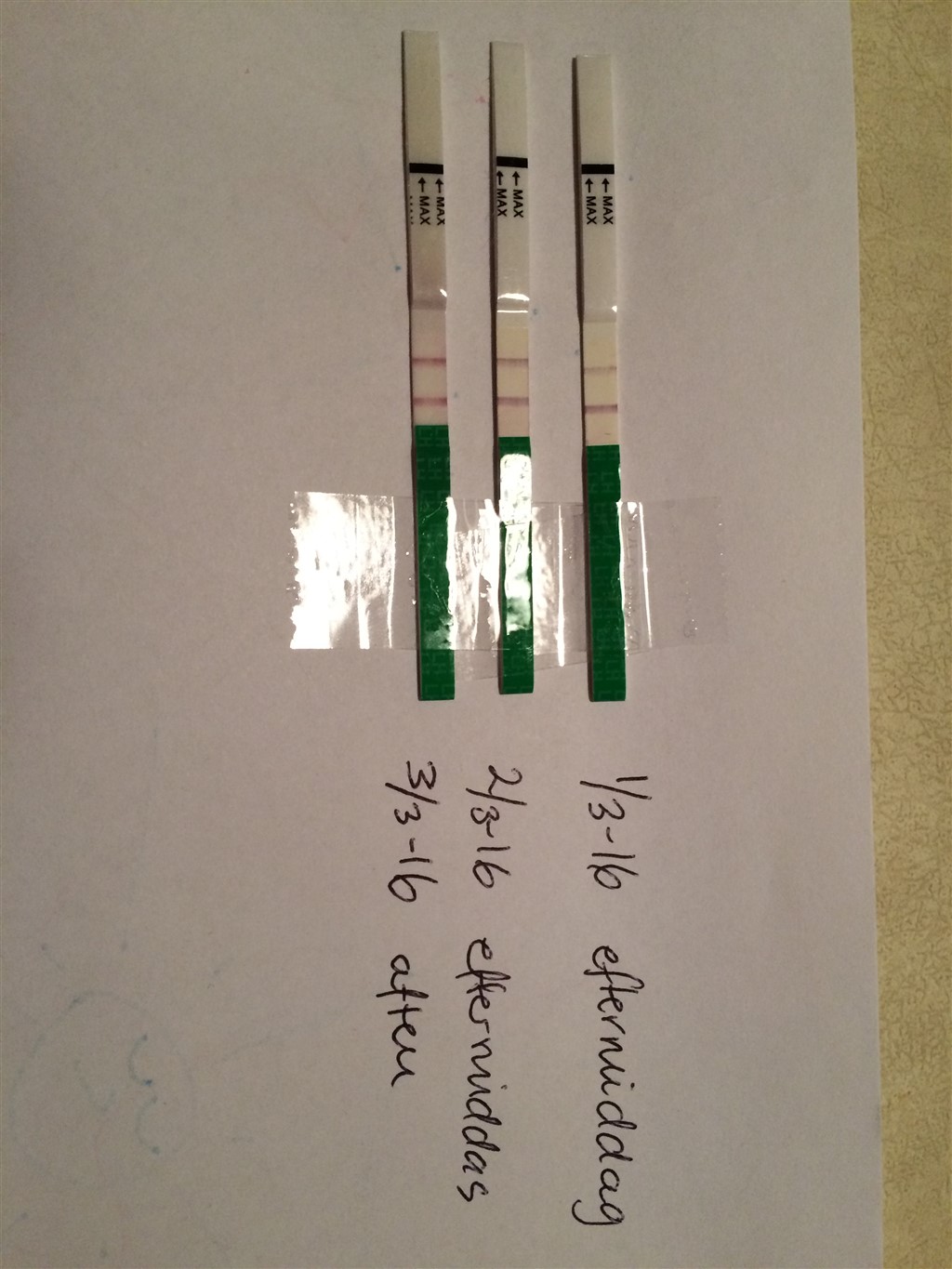 pb2016 skriver: Den fra i dag er i hvert fald positiv, enig Men synes måske den fra i går er en anelse mindre pink end kontrolstregen? Men ved ikke om man kan teste positiv i så lang tid