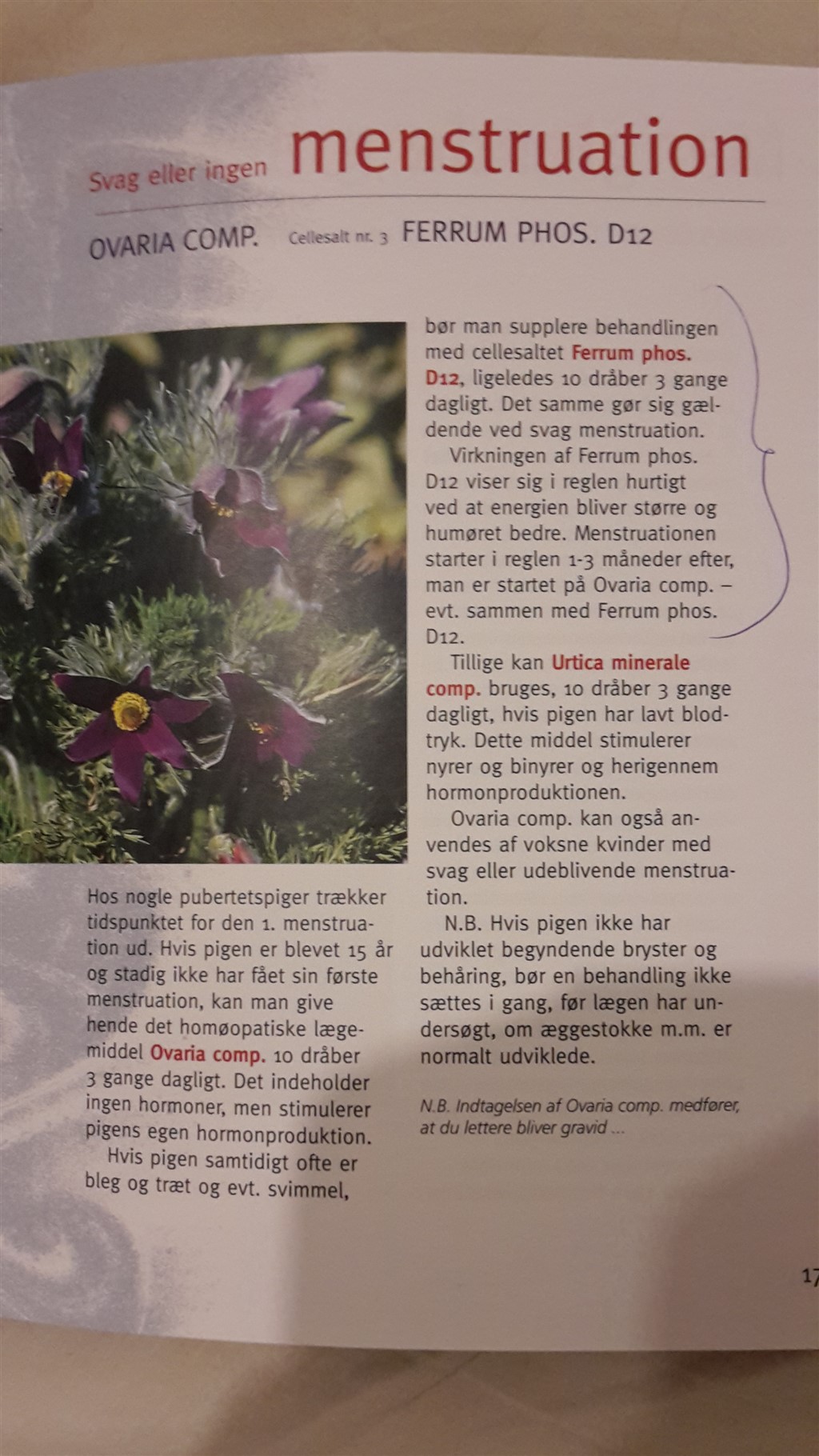 Billedet jeg har vedhæftet, er fra hæftet "Naturlig hjælp til kvinder". Der findes et hæfte mere, der hedder "Graviditet, spædbørn og fødsel" .. Der står også en del i om forskellige dråber der kan bruges i forsøget på at blive gravid