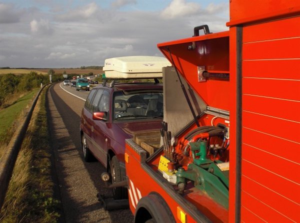 Falckmanden der kom ud til os, kom i en lille Falck-bil, så han måtte have fat i en kollega, som i stedet kunne komme efter os og vores bil. Så der gik yderligere en halv time, før vi blev hentet