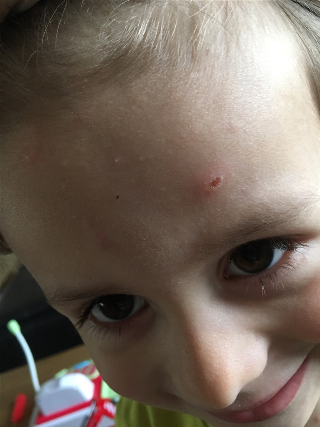 Ja som overskriften siger så vågnede min søn på 3,5 år op med mystiske knopper over hele kroppen