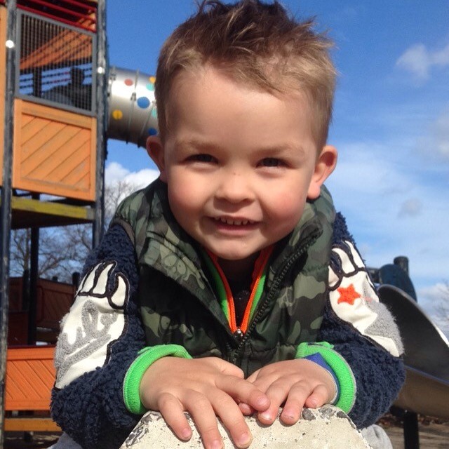 Min søn har også rigtig tykt hår og hvirvel. Han er klippet helt kort i siderne (med maskine) og lidt længde på toppen. Min søns hår vokser enormt hurtigt, så han skal nærmest klippes hver 4. uge hvis frisuren skal holde.