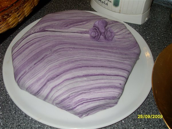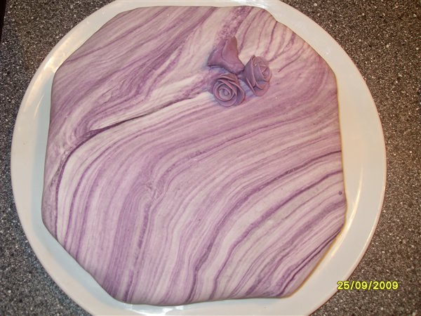 Ligger min hvide MMF på bordet i en klump, maser den lidt og tager så min farve og ligger på langs midt i... så ligger jeg den ene halvdel af MMF over den anden med farven imellem og så tger jeg klumpen op og ruller imellem mine hænder, når den så bliver for lang ligger jeg dem sammen som 2 pølser og så vrider jeg lidt og så ruller jeg igen imellem hænderne....