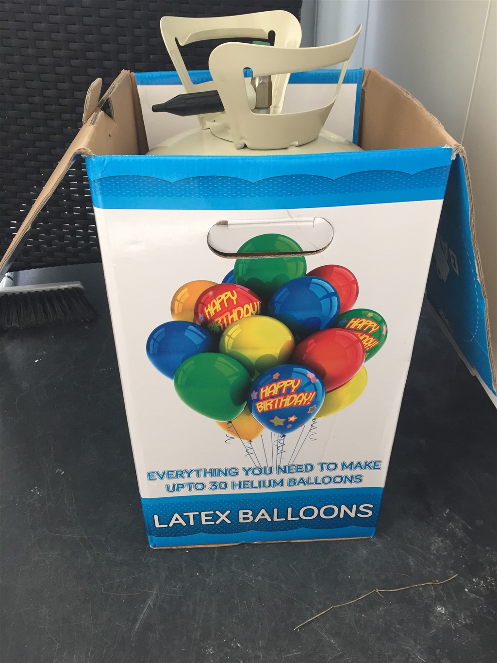 jeg flyttede i hus sidste år. Til et virkeligt pensionist område med 22 huse og vi er de eneste med børn (5 og 12) men jeg er blevet positivt overrasket da mine naboer er så søde! Jeg fortalte at min datter snart havde fødselsdag og vi vil larme ( hele klassen kommer) og de var så forstående. Så idag ligger der sådan en dims ved min dør med tillykke med fødselsdagen. Den er fyldt med Helium. Men tænkte hvis vi en dag løber tør hvor og hvordan får man den fyldt op igen? Nogen der ved noget?