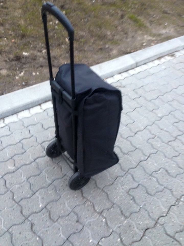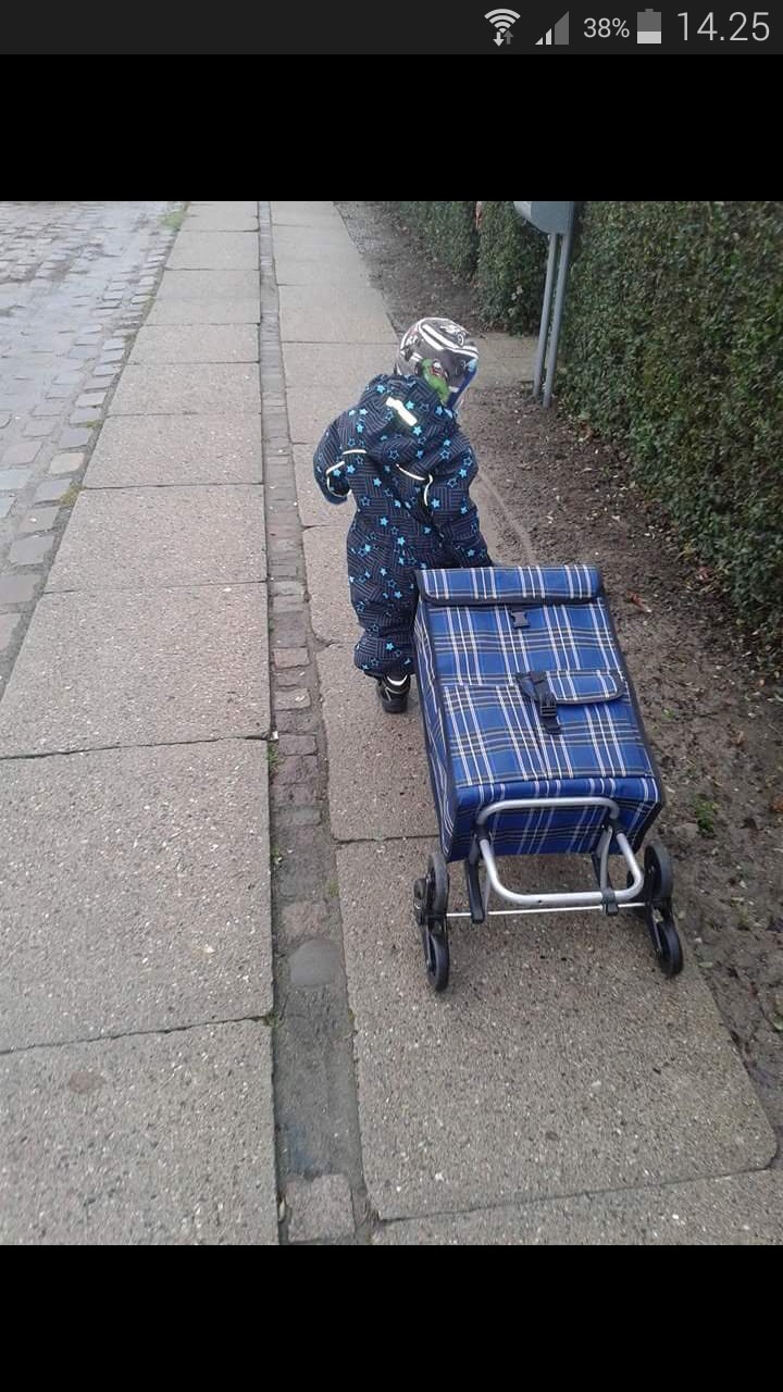 Min mor har den her (lige det eneste billede jeg har) med tre hjul i hver side, så den kan kører op ad trapper... Den er super, og er perfekt til tunge ting... har brugt den til at handle ind til druk, så den var kun fyldt med flasker og der var ingen problemer