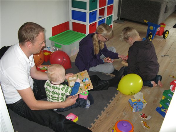 Han nød gæsterne fredag, lørdag, men søndag var han ikke så begejstret, men min søsters børn er altså også noget af en mundfuld for ham - selv Morten og jeg måtte tælle til 10 mange gange. èn gang kogte Morten også over og kom til at råbe liiiiidt højt at deres søn